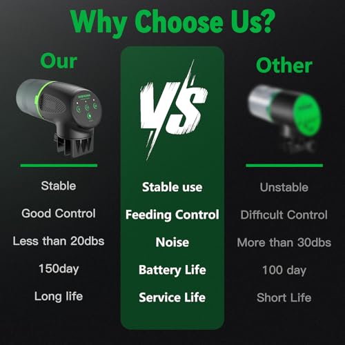 【Large Capacity & Adjustable Fish Feeder 】Our automatic betta auto fish feeder fish feeder has a large capacity of 200ml and can accommodate various types of fish feed, including pellets, granules, and powders. You can decide how much fish food to put in according to the number and size of the fish. By adjusting the slider, you can easily control the feeding amount to ensure that your aquatic pets eat the correct amount. The automatic fish feeder makes goldfish vacation feeder it easy to add fish food and is very suitable for daily use and vacation